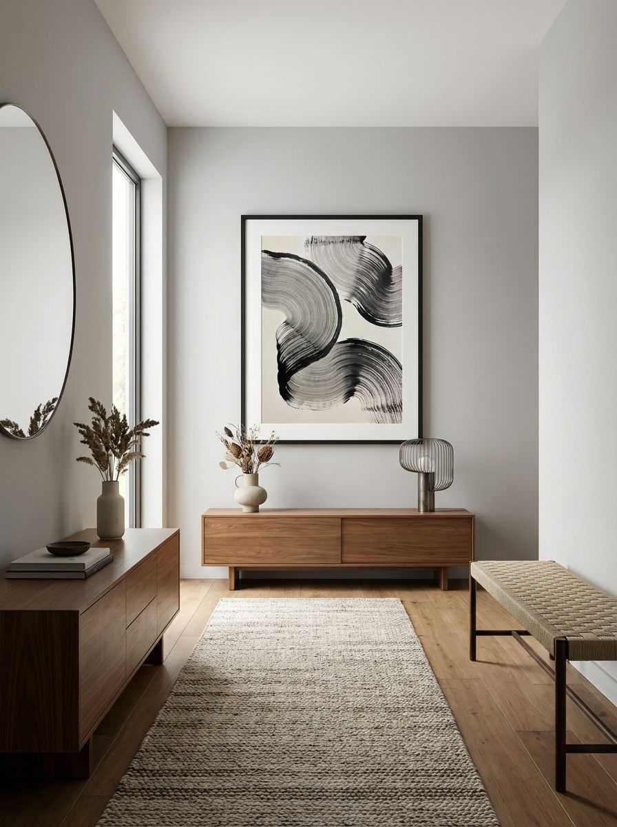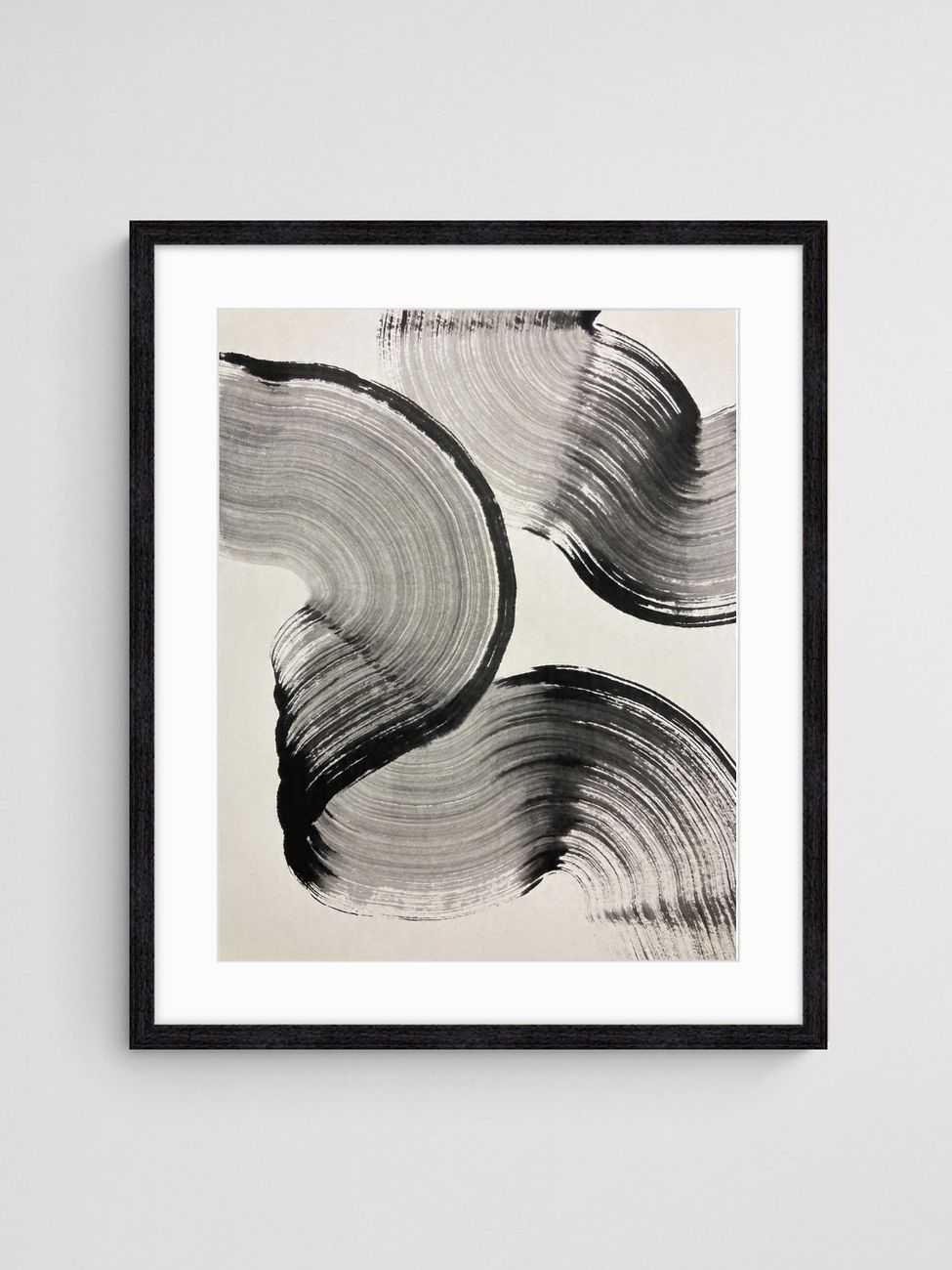 The elegance of minimalism meets organic fluidity in ‘Ink Ribbons 2.’ This captivating art print features sweeping black ink strokes that curve and ripple across a neutral grey backdrop. The bold lines and tonal gradients evoke the texture of charcoal while creating a harmonious interplay between bold contrasts and soft transitions. The layered curves resemble natural forms, such as flowing ribbons or abstract organic shells, giving the composition a dynamic yet serene energy. Perfect for modern spaces, the design achieves a refined aesthetic that complements both minimalist and contemporary interiors.