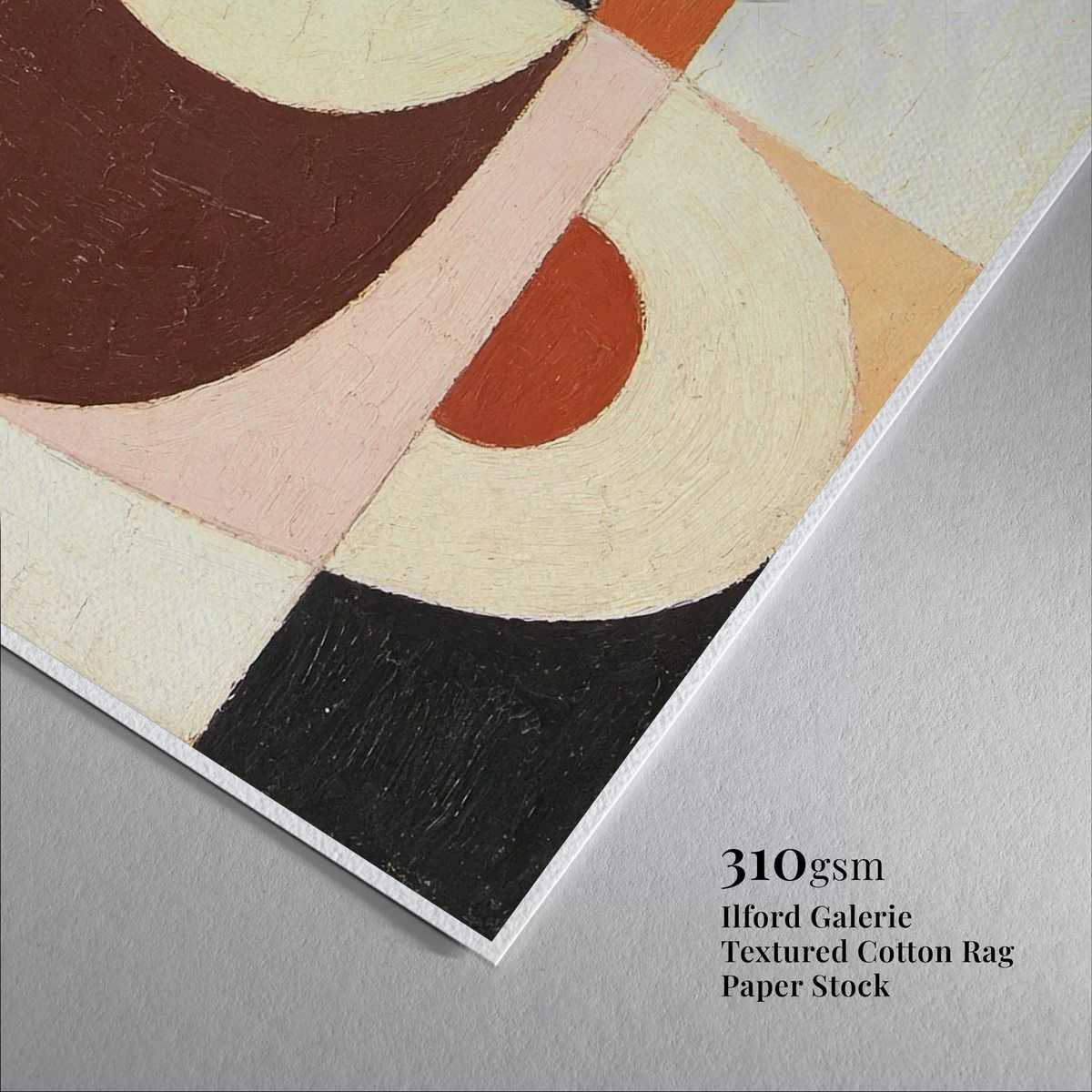 The ‘Malt Swirl’ art print features a captivating interplay of geometric shapes and earthy tones, offering a striking addition to any modern interior. Warm hues of creamy beige, deep rust, soft peach, and muted mustard are paired with bold black and ivory, creating a perfectly balanced composition. The mid-century-inspired design uses sweeping curves, angled triangles, and subdivided spaces to evoke a sense of harmony and timeless elegance.