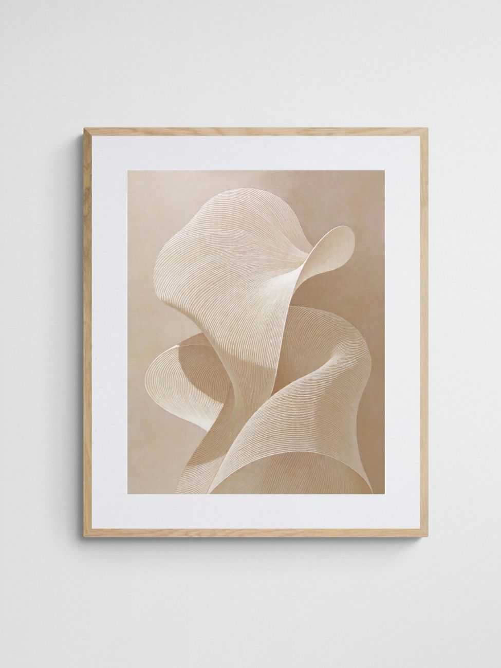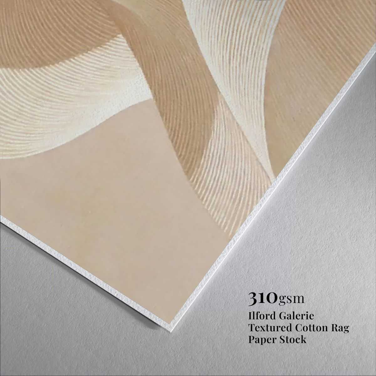 The ‘Sand Wave’ artwork is a stunning neutral abstract piece that features softly curved lines and organic shapes, creating an elegant and calming design. Set against a muted beige background, the cream-like textured patterns weave gently throughout, evoking a sense of fluid motion reminiscent of rippling sand dunes and natural waves. The harmonious balance between the shades and textures lends itself perfectly to modern interiors, providing a sophisticated yet understated focal point.